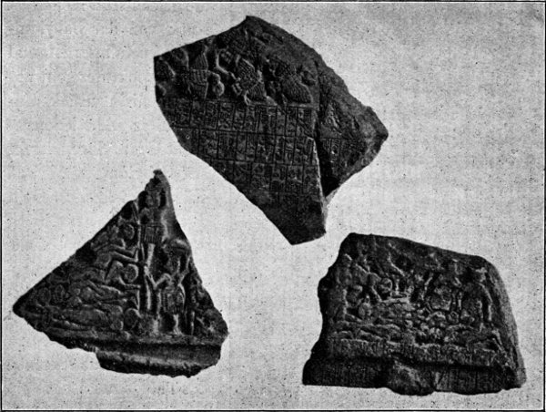 Vor der Scheintür in der westlichen Mitte, aus der der Tote oder vielmehr seine Seele, der Ka, mit der Welt verkehren sollte, waren die Opfersteine und später die Opfertempel, wo die Angehörigen dem Ka ihre Gaben darbringen konnten. Die vollständige Anlage des Königsgrabes zeigten die Funde Borchardts bei Abusîr, der aus ihnen die Gräber der Könige der V. Dynastie, des Sahurê und des Neweserrê rekonstruiert hat. Zuerst der Empfangsraum, in den die Königsleiche aus dem Kahn getragen wird, dann ein sehr langer gedeckter Gang, mit vielen Reliefs geziert, der zum Totentempel führt, in dessen Hintergrund sich der Eingang in die Pyramide, die Scheintür der Mastaba, befand. Die Pyramide[S. 7] enthält viele Kammern und viele Kostbarkeiten, aber Statuen, wie in den Mastabas, sind dort nicht gefunden worden. Die vielen Kostbarkeiten entwickelten eine eigene Zunft der Gräberdiebe, uns sind die Akten eines grossen Prozesses unter Ramses IX. erhalten, und durch einen sonderbaren Zufall haben Northampton, Spiegelberg und Newberry bei ihren Ausgrabungen in der Gräberstadt (Nekropole) von Theben diese Akten verifizieren können (excavations in the Theben necropolis, London 1908).