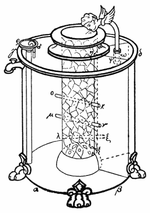 In jeder Hieroglyphe sah man ein Bild oder Symbol irgend eines tiefen Gedankens und suchte sie wie einen Rebus zu erraten.[S. 16] So las der bekannte viel wissende Jesuit Athanasius Kircher, der von 1601–1680 lebte und die Laterna magica u. a. erfunden hat, die sieben Zeichen:
