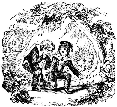 “‘John,’ said Henry, ‘I’ll get up the powder, and you go hide away those squibs among the bushes; and make haste; do, for I hear the girls, and {7}they’ll be here in a minute.’