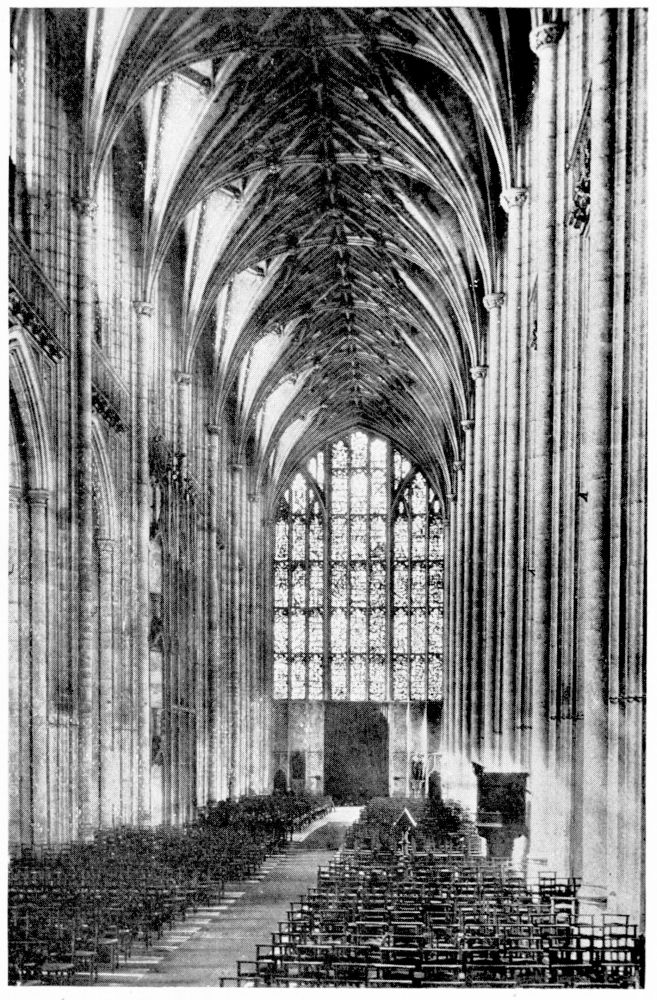 The next period—that of the Transition—in which the science of vaulting received great impetus and construction became more elegant and graceful in line, is splendidly exhibited at Canterbury in the work of the French William of Sens and his successor, the English William. Christ Church Cathedral, Oxford, is also a fine example of late Norman and Transitional work.