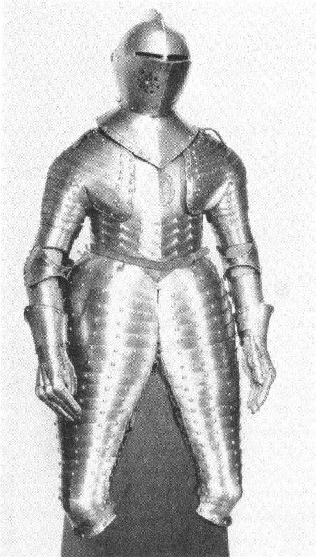 However the principal reason for the small average size of preserved suits of armor lies in its inextensibility. A suit of armor cannot be “let out”. 20 As has been pointed out, it had to be made exactly to fit the wearer. Men had to learn their military duties very young, they had to have and to wear armor while they were still growing. Consequently they usually outgrew their first suit of armor, and it was this suit, unmarked by the scars of serious fighting, which was most likely to be preserved. By the time a man reached his full growth his armor showed wear and tear; when he died he was buried in it, or it was discarded after his death as too battered to be worth keeping. The suits of armor in the world’s collections are largely the outgrown suits of young men.