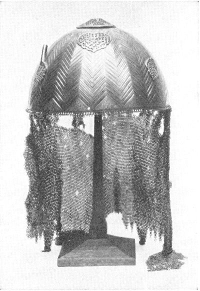 Fig. 25. The chain mail which now looks rather ragged originally hung evenly around the rim of this Persian helmet.