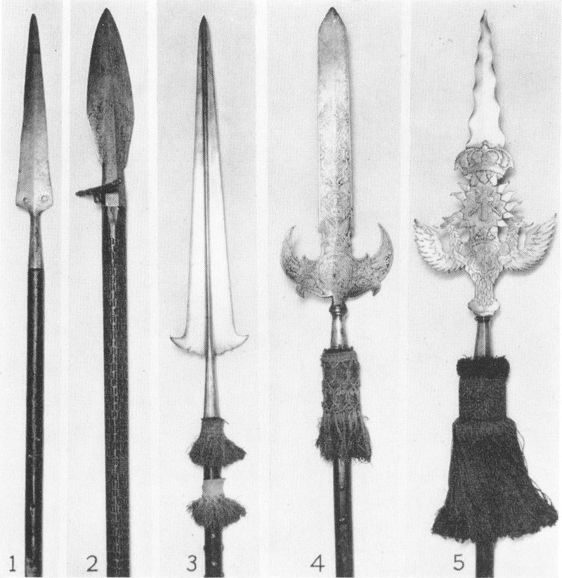 Fig. 33. Spear-type pole arms, XV-XVII centuries. Developing from a simple tool for stabbing to a decorated badge of office.