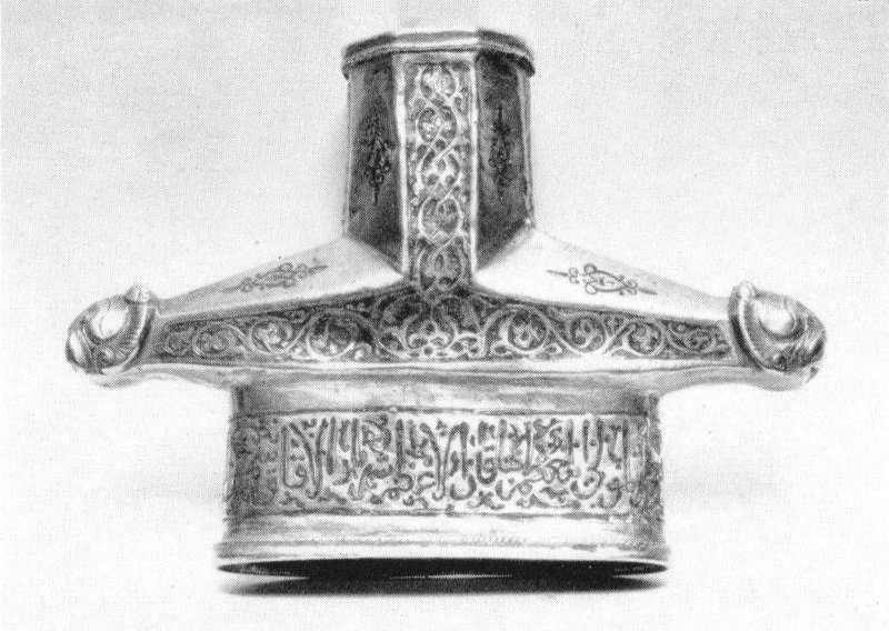 Fig. 36. A Persian sword hilt of solid gold, XIII-XIV century, inscribed: “Salute to Mohammed”.