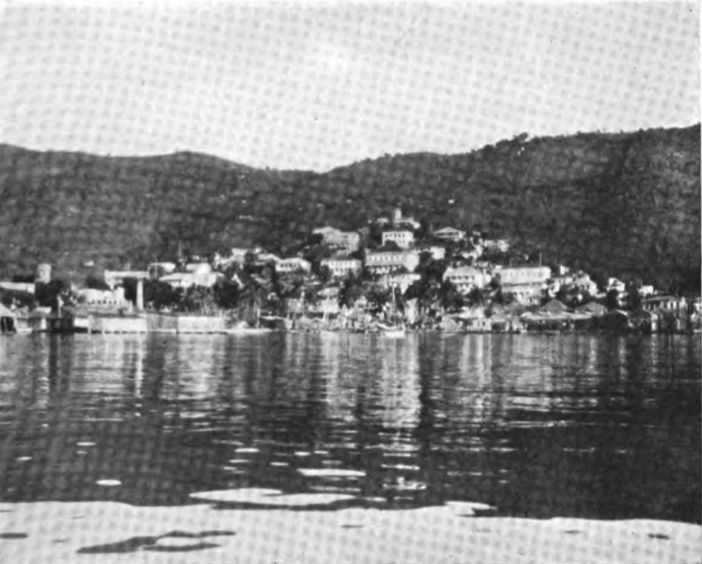 Past the long cerulean reaching and heaping of Porto Rico on the left, and past hopeless St. Thomas on the right,—old St. Thomas, watching the going and the coming of the commerce that long since abandoned her port,—watching the ships once humbly solicitous for patronage now turning away to the Spanish rival, like ingrates forsaking a ruined patrician;—