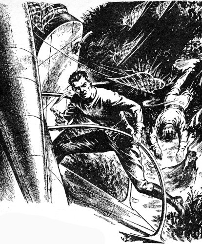 I pulled my machine-pistol from its holster, pointed it at him, and explained. I couldn't have taken any chances with Pearce. I knew what his reaction would be. I wasn't wrong.