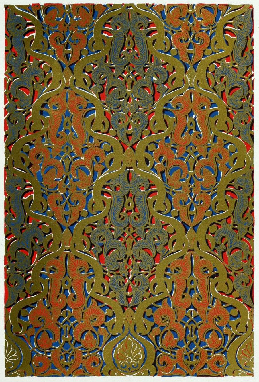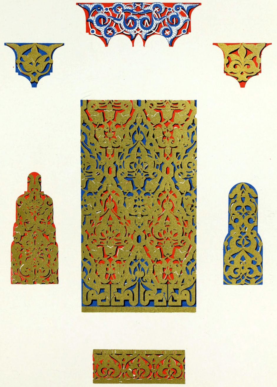 “It is really impossible to do justice, in a journal of this kind, to the sumptuous volume (its price is two guineas and the book is worth it) before us. To do that—to give the reader any adequate notion of the beauty of the illustrations with which it is enriched—we should have to summon all the resources of the colour printer’s art to our assistance, in order to reproduce them in a special edition de luxe of the “P.M.G.” Inasmuch as that is not to be done, we must ask the reader to take it on trust from us that the illustrations of Moorish decorative art are something quite out of the common.... The making of this book must, surely, have been a labour of love; and love’s labour has certainly not been lost.”—Pall Mall Gazette.