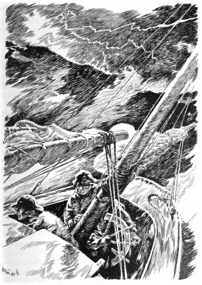 At the wheel was a man not over middle height, compact and strong-looking, with a clear, ruddy complexion, dressed in a pair of khaki trousers and gray flannel shirt, a striking contrast to the officers of the destroyer. The new skipper wasted no time in greetings, but with eyes intent on the movements of the motor-boat just shoving off, reached for the starboard jib sheet, pulled it in and held it till the sailboat payed off to port and gathered steerageway. Then, trimming the jib over, he settled back comfortably and said, “Well, how are you? Had a nice trip across the Bay, didn’t you?”