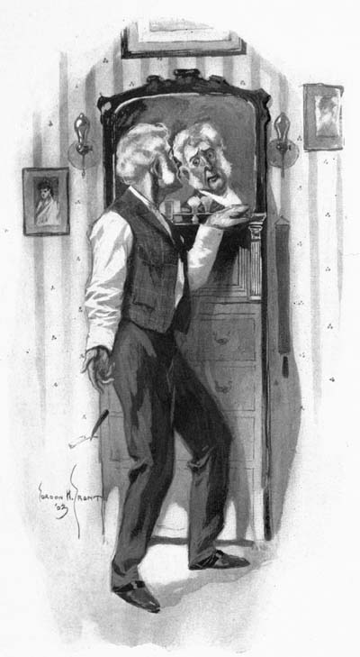 My wife and I were as if in a dream or a daze. A whole, new world was opening to both of us—the world of fashion, luxury, and display. True, we had seen it from the outside before; and had had it constantly before our eyes; but now we were touching it, tasting it, smelling it—were almost grasping it. We were unhappy as we drove home in our ill-smelling public cab, and when we reentered[17] our little world it seemed humble and narrow and mean—a ridiculous fool’s paradise.