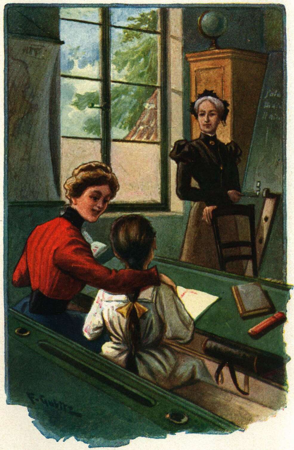 Gretchen Reinwald gibt der kleinen Ruth Holland französische Nachhilfstunde.