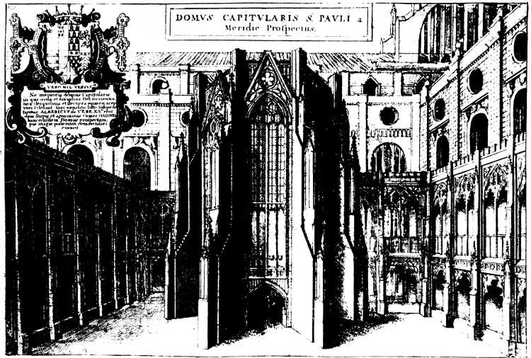 Domus Capitularis Sti Pauli a Meridie Prospectus. By Wenceslaus Hollar. From Sir William Dugdale, History of St. Paul’s Cathedral (1658) Frontispiece