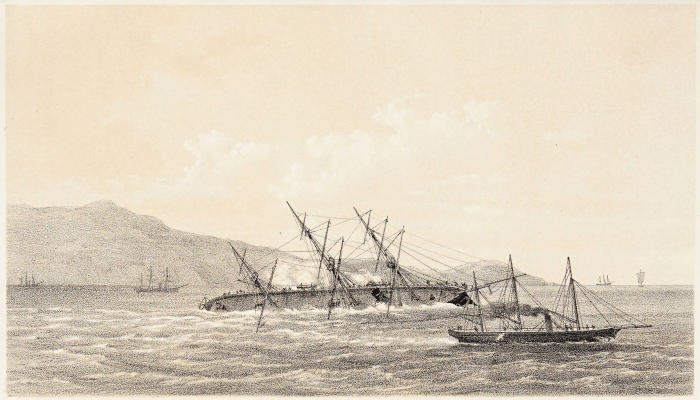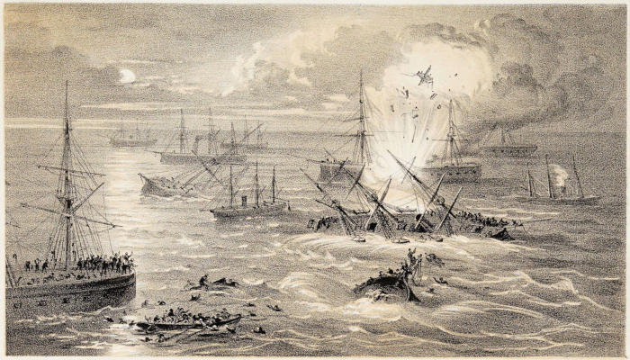 PASSING DOWN BETWEEN TWO LINES OF VESSELS AT ANCHOR, AND DESTROYING THEM ON EITHER SIDE.