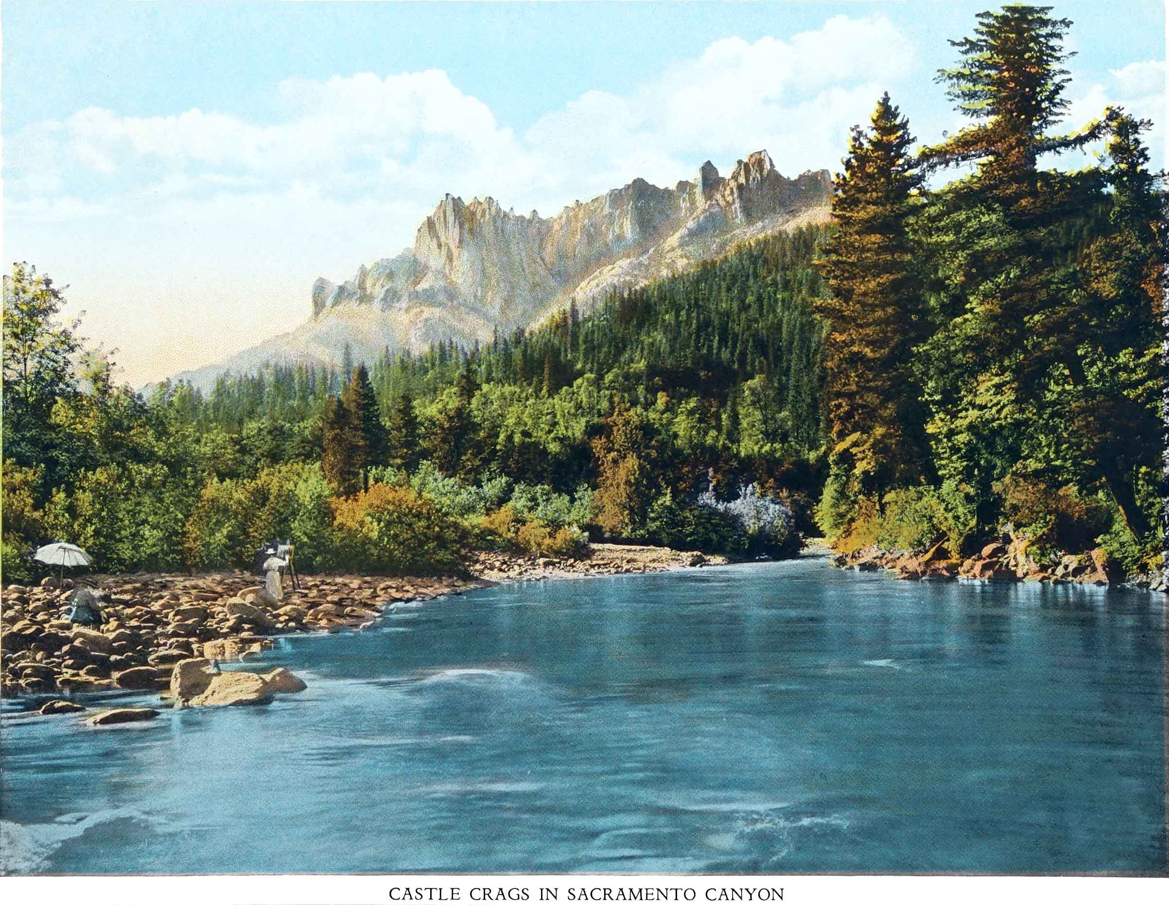 Castle Crags, in the Sacramento Canyon, are great granite rocks, rising close beside