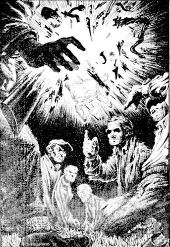 Half a dozen men with rifles were advancing across the burned out area of the swamp. "Attracted by the flame," muttered the Professor. "The fools." He swung around to cover them with his weapon, keeping one eye on Crusoe.