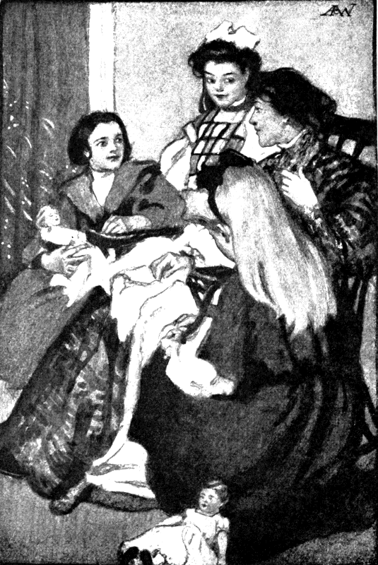 “What shall we name it?” asked Elsa, who had settled herself on the soft rug by the bedside, with one elbow on the window-seat so that she could better look at the dolls.