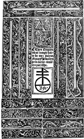 This confession of Copland’s, coupled with the fact that the author had a moment before expressed the opinion that a ‘penny’ was enough to spend on books, shows how great was the gap that separated the Continental from the English printer in the fifteenth and sixteenth centuries, and accounts for the paucity of borders and ornaments found in English books up to 1500, noted by Mr E. G. Duff in the chapter which he added to Mr A. W. Pollard’s work on Early Illustrated Books.
