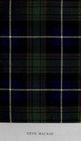 Various circumstances tend to enhance the interest of this design, which is especially associated by Jacobite enthusiasts with the memory of Prince Charles Edward, and which was named during the campaign of 1745-46 from his personal use of it. Authenticated by specimens of contemporary and immediately subsequent dates—invariably bearing the legend of royal adoption—the tartan may be ranked amongst the earliest clan patterns extant in fabric. It is undoubtedly an old pattern of the Mac Raes; and it was certainly worn by the Prince in their territory. But whether it was previously used by members of the clan, or whether it was adopted by them as a compliment to the wearer, cannot be determined. Tradition indicates, however, that the Prince was wont to don the local colours of the various clans in his sojournments in their respective districts. It is now generally known as Mac Rae; but in all representations hitherto published the omission of the yellow lines has produced confusion as to the true sett.