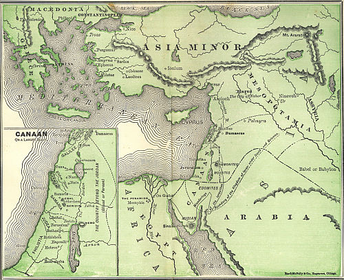 The country known by the names of Canaan, Palestine, the Holy Land and the Promised Land is located in Asia, at the eastern end of the Mediterranean Sea, and not far from Africa. It is not far from Europe, and consequently very near the center of that part of the earth which was known to the ancients. It has an extent of less than six thousand square miles, being about one twenty-second part of the size of the kingdom of Norway. It has now about three hundred and fifty thousand inhabitants, but had formerly a great many more. When King David numbered the people, he found one million three hundred thousand who could bear arms. One-fourth of a population is generally considered able to bear arms, and the number of inhabitants at that time must have exceeded five millions.