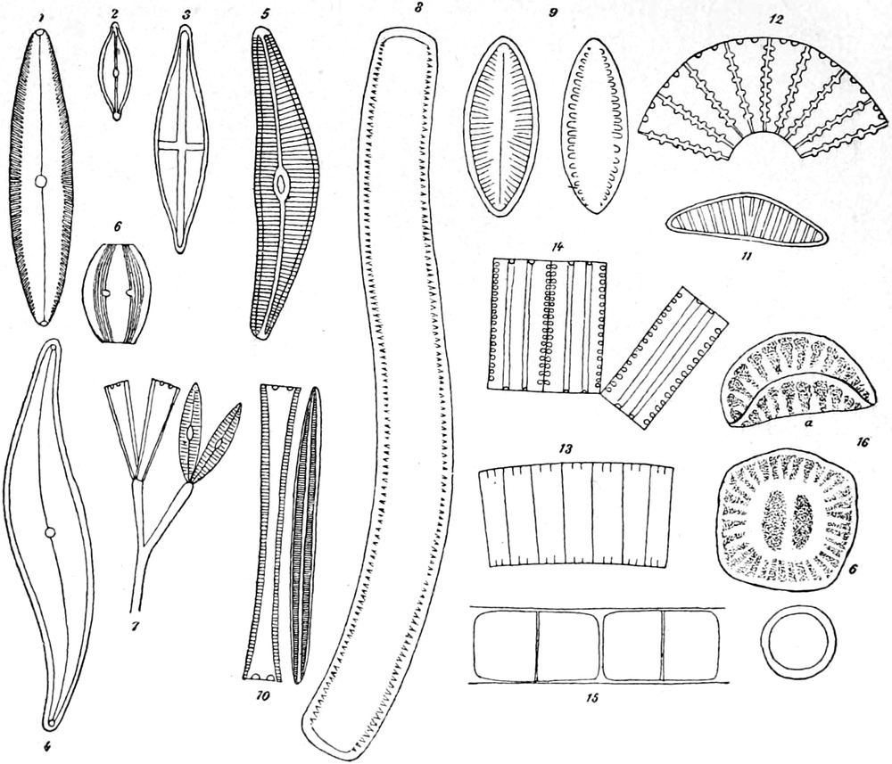 2. Kieselalgen (Bacillariaceae oder Diatomaceae), 3. Grünalgen (Chlorophyceae),