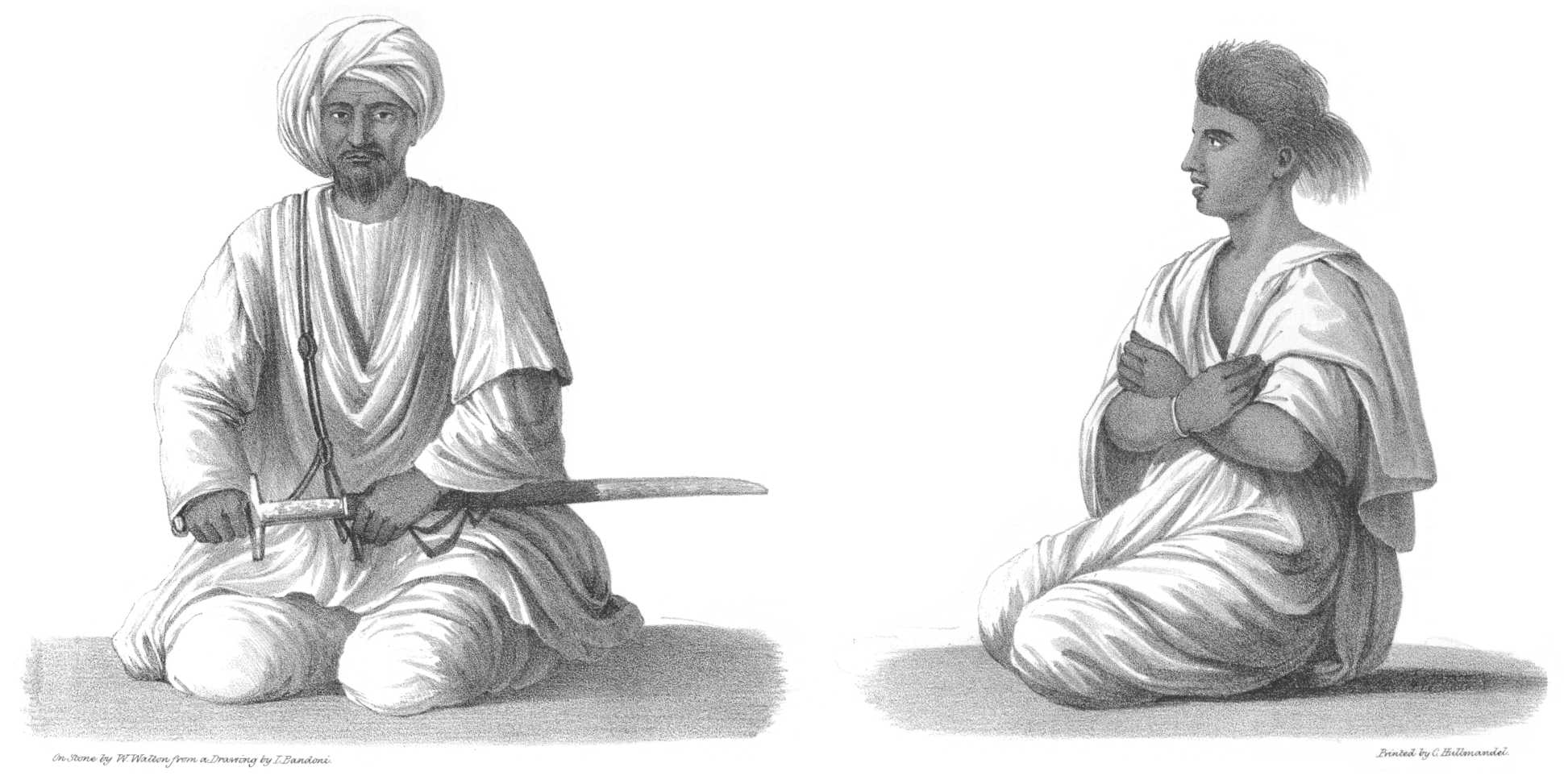 [34]This Plate contains also an Ababde of the Desert, in the short drawers they sometimes wear.