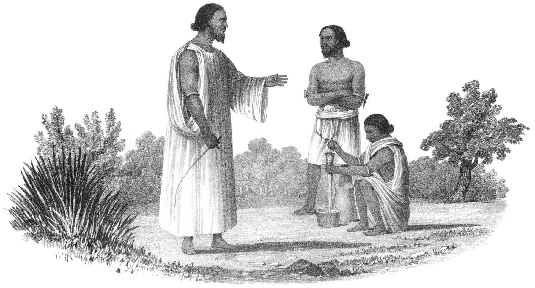 “April 8. 1832.—Our pilot afforded us a curious exhibition, although not, I believe, uncommon; but to us it was new. He pretended or believed that his saint, to whom he had been addressing his evening devotions, had entered his body, and he immediately fell into the most violent paroxysms, throwing his arms about, rolling his head, and twisting his body in a very outrageous manner: sometimes he held up his hands, and shook, as in the most dreadful convulsions, groaning most piteously, and gabbling forth all sorts of gibberish. The sailors made a circle round him, and continued making low obeisances, calling on Mahomet to assist him, for nearly two hours; they believe that, unless they did this, the saint would never leave him, and he would have probably died. The man, in his madness, seemed to have a great jealousy for his honour; one of the mariners was sleeping on board the boat, while the others were on the banks praying for them; on a sudden he darted into the boat, and, had he not been detained, would have roughly used the drowsy mariner. After all the Mahometans near him had joined the circle to pray for his recovery, he returned, by degrees, to his senses: when the fit was over, he lay for some time apparently quite exhausted. The man is remarkable at other times for the mildness of his manner, and is one of the finest looking Nubians I have seen, being above six feet high, with uncommonly handsome features. The people consider those who are thus possessed as peculiarly favoured, not one in a thousand being so fortunate. After death they are generally considered as saints, and have tombs erected to them by the government, which does this, no doubt, to gain popularity, or conciliate the people: but it is generally believed that the saint has appeared to the Pasha, ordering him to erect it.”