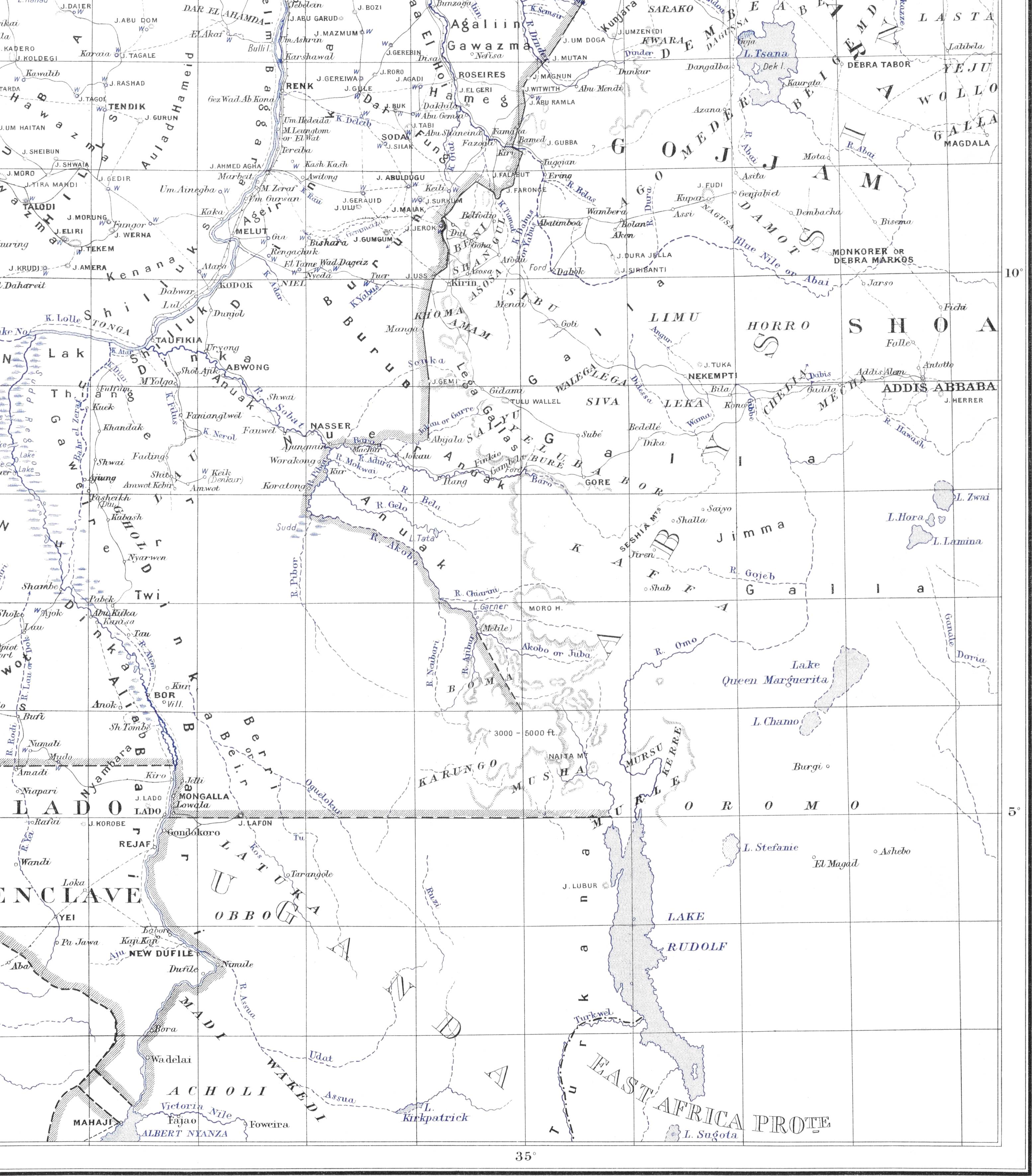 Ancient.For old maps of particular portions, see reproductions of ancient maps in Scott Keltie’s “Partition of Africa,” Cailliaud’s Atlas (along the Nile); the same and Lepsius, for Antiquities; Lejean’s Atlas of Voyage aux deux Niles—somewhat inaccurate; Russegger—valuable mineralogical and other maps of east Sudan and Kordofan; Junker—Modern.chiefly Bahr El Ghazal and Eastern Sudan; and the recently published one of Marchand’s, etc., journeys—Bahr El Ghazal to Abyssinia, 4 sheets (published by the “Société de Géographie, Paris,” 1903. 1:1,000,000.)
