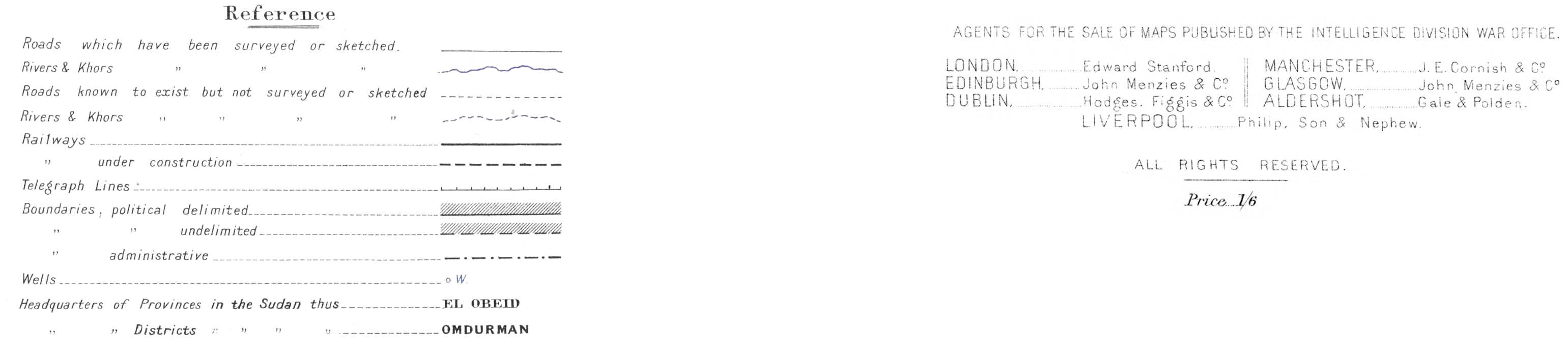 The most modern and most accurate maps however are the series of Ordnance Survey Maps now being constructed by the Director of Surveys, Sudan Government, and printed and published by I.D.W.O. (No. 1489) on a, scale of 1:250,000 (about 4 miles to the inch). Of these, each covering 1 degree of latitude and 1½ of longitude, there are over 50 now on sale, out of about 140 projected. They can be obtained (price 1s. 6d. each) from the leading map-sellers in England, and exceptionally a few are to be had from the Director of Intelligence, Cairo.