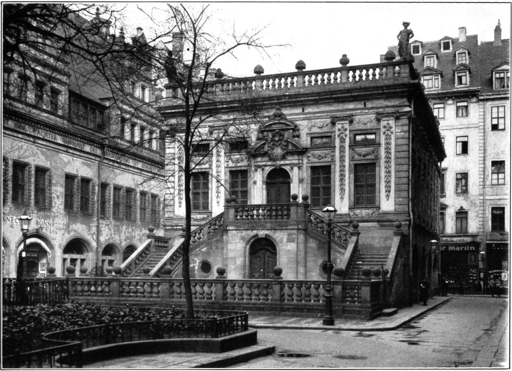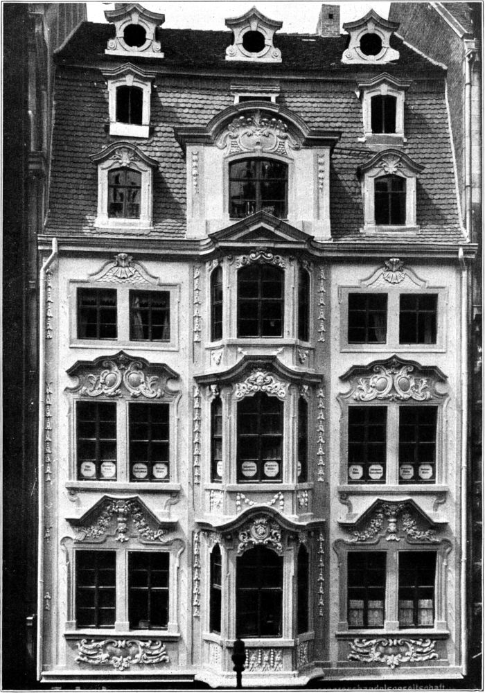 Wenn Leipzig unter den deutschen Großstädten nicht im Rufe einer Kunststadt steht, soweit es die bildenden Künste angeht, so hat das seinen Grund im wesentlichen darin, daß es hier in der Tat niemals eine eigentliche Maler- oder Bildhauerschule von Bedeutung gegeben hat. Und auch für die Baukunst mußten die Dinge, sollte man meinen, ungünstig liegen. Für die Errichtung großer Bauten weltlicher Natur etwa, wie Schlösser oder Paläste, kam Leipzig, das nie der ständige Wohnsitz eines Herrschers gewesen ist, nicht in Frage. Um so mehr muß es Bewunderung erregen, daß die bürgerliche Architektur der Stadt es vermocht hat, sie überall mit Gebäuden von viel höherem Werte zu schmücken, als gemeinhin bekannt ist. Denn wenn der Leipziger wie der Reisende auch die Denkmäler der deutschen Renaissance des sechzehnten Jahrhunderts, wie das Alte Rathaus und das Fürstenhaus, kennt und schätzt, so gehen beide doch fast stets achtlos an all den Bauten vorbei, die den alten Straßen Leipzigs eigentlich ihr Gepräge und ihren nur ihnen eigentümlichen Wert verleihen. Ich meine die Wohn- und Handelshäuser der Barockzeit, also des Jahrhunderts zwischen dem Dreißigjährigen Kriege und dem Beginn der Aufklärungsperiode, der Zeit unserer Klassiker. Nur den wenigsten dürfte bekannt sein, daß keine deutsche Stadt eine solche Fülle größter Bürgerbauten von guter künstlerischer Qualität aus dieser Zeit besitzt, wie es in Leipzig noch vor dreißig Jahren der Fall war. Es wäre sonst nicht möglich gewesen, daß so wenig für die Pflege dieser Kunstdenkmäler geschah, daß wieder und wieder wichtige Häuser in der inneren Stadt abgerissen wurden, um Meßpalästen oder Banken Platz zu machen[1], und daß manche der bedeutendsten in ernstlichen baulichen Verfall gerieten. Noch bis vor kurzem ließ man ruhig die Fassaden abbröckeln, entfernte man große Teile ihrer Stuckverzierungen, ließ im Inneren, um die Zimmereinteilung zu ändern, Stuckdecken zerstören und verunzierte vor allem Portale und Torwege durch Schaukästen, ganze Fassaden durch Reklameschilder.
