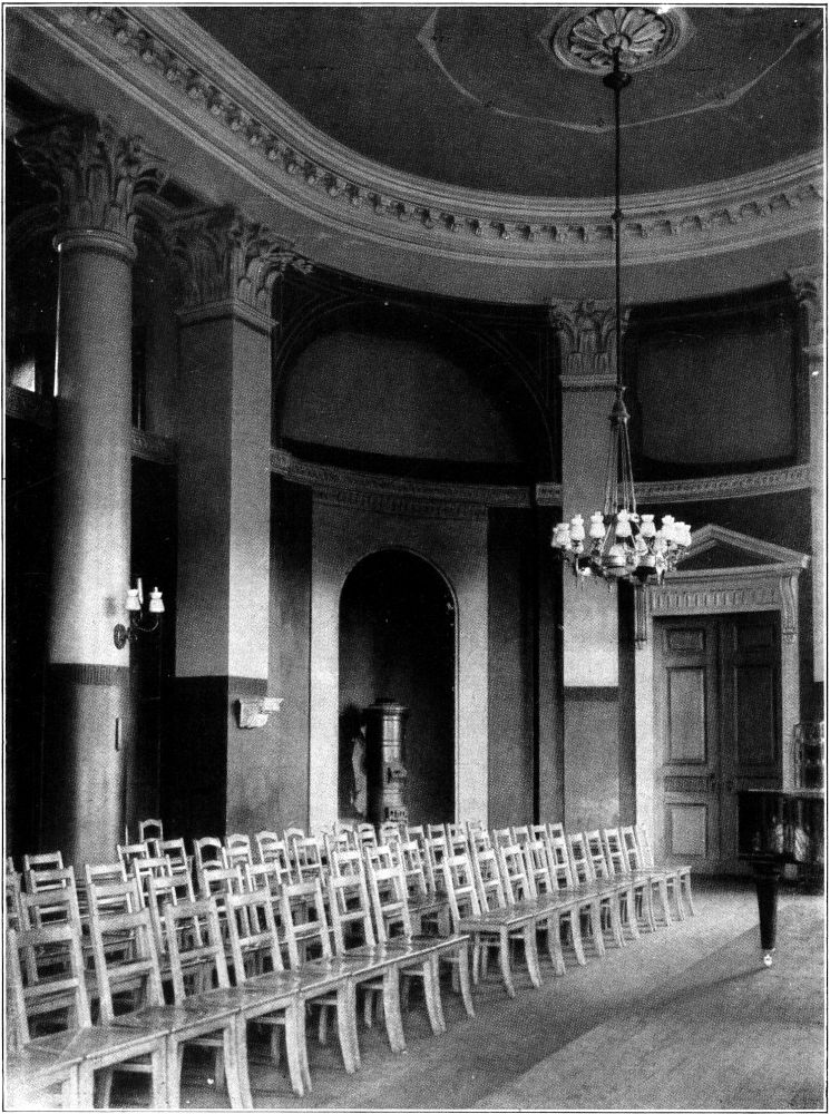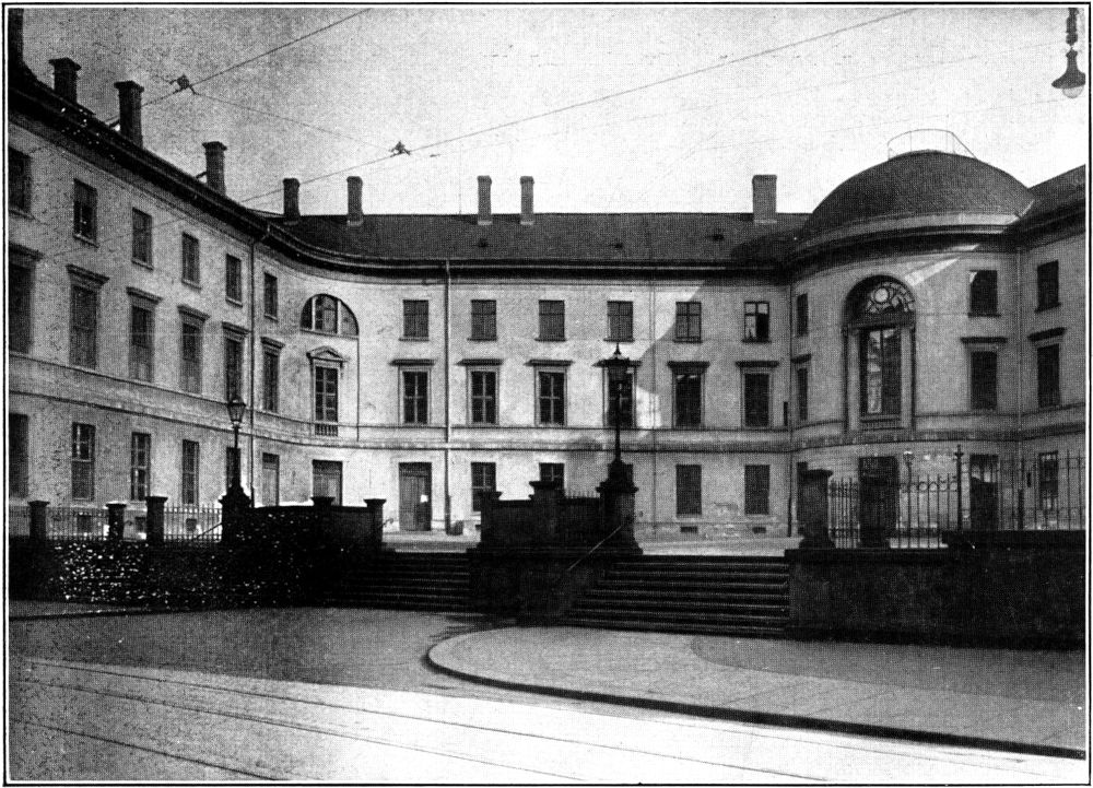 In Leipzig setzte frühzeitig die Bewegung des Klassizismus ein. Hier hatte bereits der Zopfstil, der Vorläufer der klassizistischen Periode, in Adam Friedrich Oeser, dem Maler und Lehrer Goethes, seinen Hauptvertreter. Der praktische Vertreter des Klassizismus wurde nach ihm der Architekt Johann Friedrich Dauthe, der in seinen Bauten dem Zuge der Zeit zur Antike einen starken Ausdruck zu geben verstand. Als eines seiner besten Werke kann noch heute die Innenarchitektur der Nikolaikirche gelten, deren ehemals gotischen Stil Dauthe in eine mustergültige naturalistische Form des Klassizismus brachte. Ein weiterer Bau dieses Architekten, die Frauenberufsschule auf der alten Moritzbastei, hat im vorausgehenden Artikel eine ausführliche Darlegung gefunden. Der Architekt von heute wird bei einem näheren Studium[279] der schlichten Fassade viel schöne Einzelheiten und feine Gedanken klassizistischen Empfindens wiederfinden.