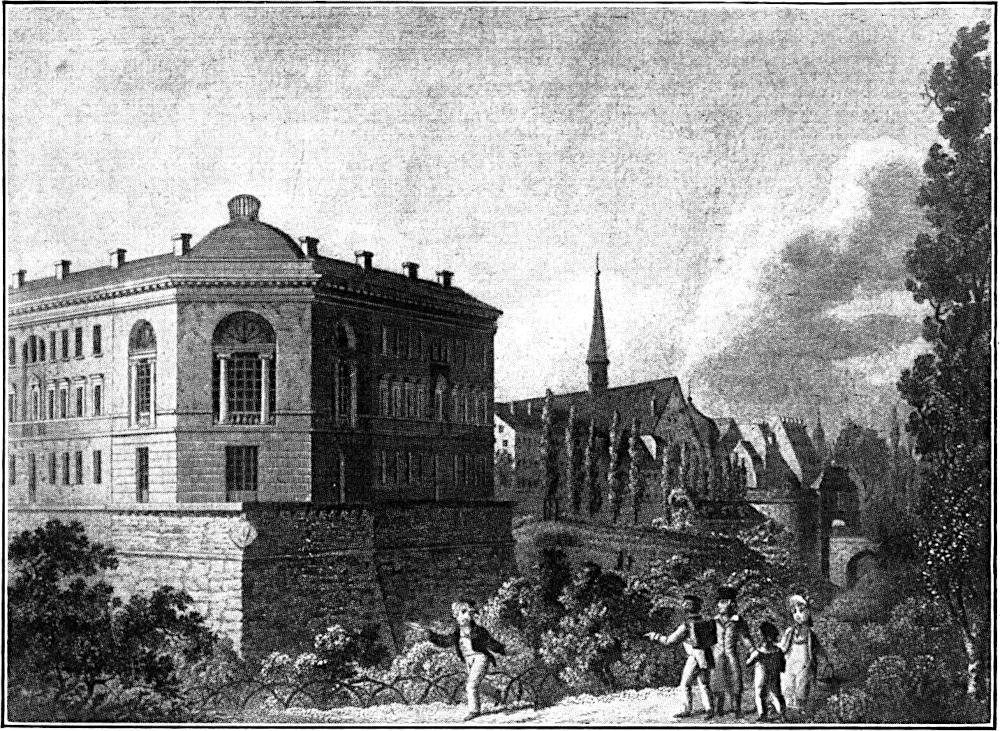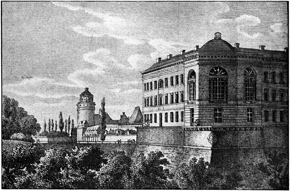 Nach Abschluß des Hubertusburger Friedens (1763) stellte der damalige regierende Kurfürst von Sachsen die gesamten Festungswerke Leipzigs, die sich während des Siebenjährigen Krieges als völlig ungeeignet und zwecklos erwiesen hatten, dem Rate der Stadt mit der Bedingung zur Verfügung, daß die Festungsanlagen beseitigt und die gewonnenen Plätze »gemeinnützig« gemacht werden sollten. Die Stadt nahm wohl das Anerbieten an, kam jedoch den gestellten Bedingungen aus Geldmangel nur langsam nach. Die festen Basteien blieben zunächst noch bestehen, doch wurde ein großer Teil der Schanzen (»Ravelins«) abgetragen, das Erdreich zur Ausfüllung des Festungsgrabens verwandt, und auf dem so gewonnenen Boden teils Alleen, teils Obst- und Gemüsegärten angelegt. Erst Bürgermeister Müller trat mit Energie für die restlose Erfüllung der vom Kurfürsten gestellten Bedingungen ein. Es waren die Befestigungsanlagen zwischen dem Grimmaischen und Halleschen Tore längs der Stadtmauer, die noch der Umwandlung bedurften; so war auch die alte Moritzbastion an der Südostecke der Stadt noch erhalten geblieben. Um das gewaltige Mauerwerk dieser Anlage sachgemäß auszunutzen, hatte man die Absicht, die Moritzbastion als Untergrund für eine zu errichtende[270] Bürgerschule zu verwenden. Der Gedanke zur Schaffung dieser Schule ist der nimmermüden Regsamkeit des Bürgermeisters Müller zu verdanken. Bereits im Jahre 1792 war auf dessen Betreiben eine Ratsfreischule errichtet worden. Für die arme Stadtbevölkerung Leipzigs war dadurch Sorge getragen, aber auch für die mittleren Volksklassen, die gern ein mäßiges Schulgeld bezahlt hätten, mußte eine öffentliche Schule geschaffen werden. Im Februar 1795 richteten auf Müllers vorherige Anregung hin fünfundzwanzig Leipziger Innungen ein Schreiben an den Rat, worin sie die Bitte aussprachen, der Rat möge ihnen »eine allgemeine Bürgerschule schenken«, in welcher ihre Kinder »gegen ein billiges Schulgeld einen ebenso wohltätigen und zweckmäßigen Unterricht als die armen Kinder in hiesiger Freischule genießen könnten«.[271] Die Stadtbehörde kam der Eingabe wohlwollend entgegen. Mit dem Entwurfe und der Ausführung wurde der damalige Baudirektor der Stadt Leipzig, Dauthe, betraut. Im März 1796 legte er die Pläne zu dem Schulgebäude vor, das auf der Moritzbastei seinen Platz finden sollte, da man dort in dem Mauerwerk der alten Festung den besten Untergrund zu finden hoffte.