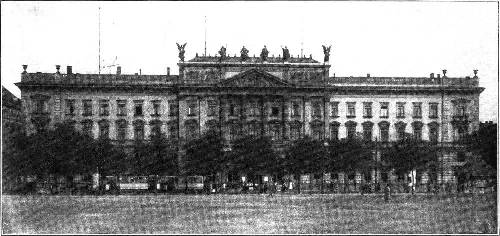 Vier Bauwerke sind es, welche heute dem Besucher des Augustusplatzes durch ihren gleichartigen Stil besonders in das Auge fallen: Universität, Post, Theater und Museum. Diese Gebäude präsentieren sich ihm in ihrem italienischen Renaissancestil als scheinbar gleichaltrige Gefährten aus dem Ende des vorigen Jahrhunderts; doch dem ist nicht so.