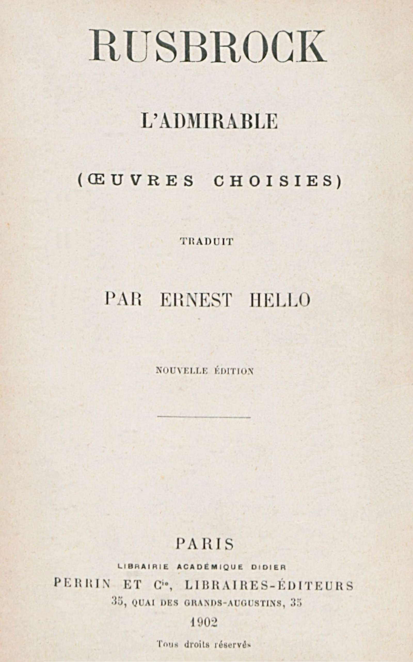 Personne n’est assez abandonné, assez maudit, pour lire Rusbrock et ne pas sentir l’aiguillon du salut le piquer au fond de l’âme. Personne n’est assez sublime pour ne pas trouver dans Rusbrock le secret d’une sublimité plus haute.