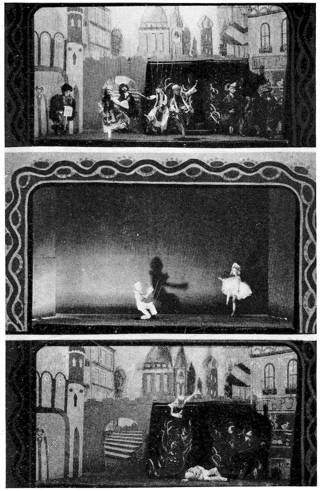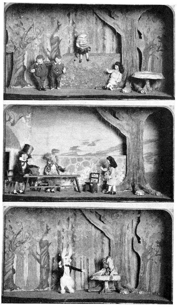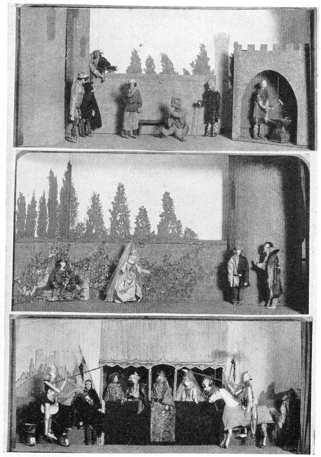 | Upper. Marionettes from “The Adventures of Alice.” Lower Left. Bear and Trainer from “Men of Iron.” Lower Right. Marionette from “Petroushka.” | 130 |