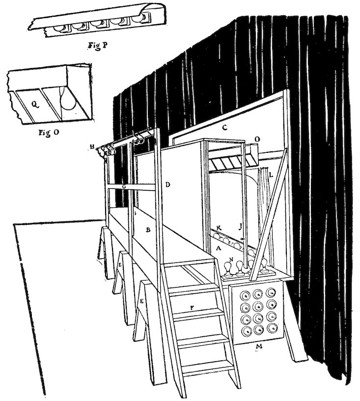 | Side view of Marionette stage, with lighting | 51 |