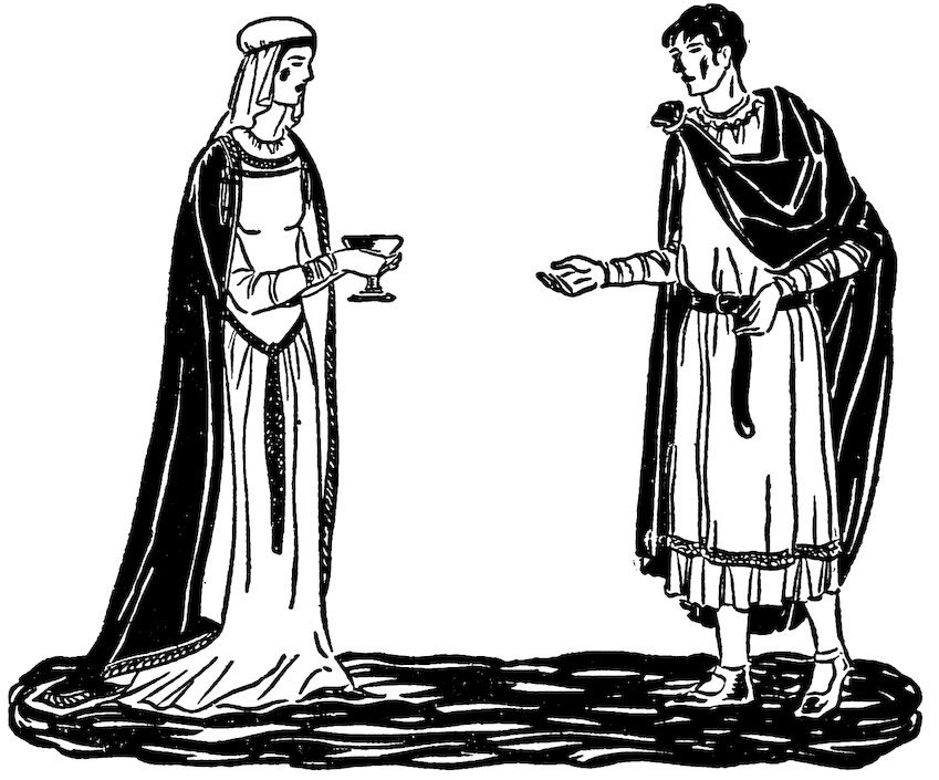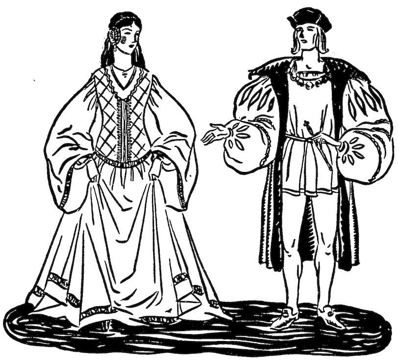 Sometimes puppets received invitations to visit great knights and ladies in their castles. They were eager for such invitations because they enjoyed the experiences of traveling. As always happens in travel, they saw new things to interest them and met new people, many of whom were quite different from their earlier and more serious-minded friends. They enjoyed the life of the castle, the songs of the wandering 12minstrels, and the heroic stories that the traveling bards told in the evenings about the fire in the great halls. They liked the noble lords and ladies, their speech and manners and dress. These marionettes became what you might call aristocrats.