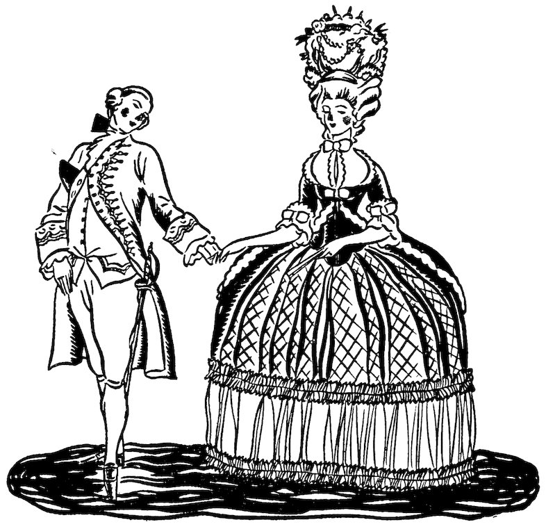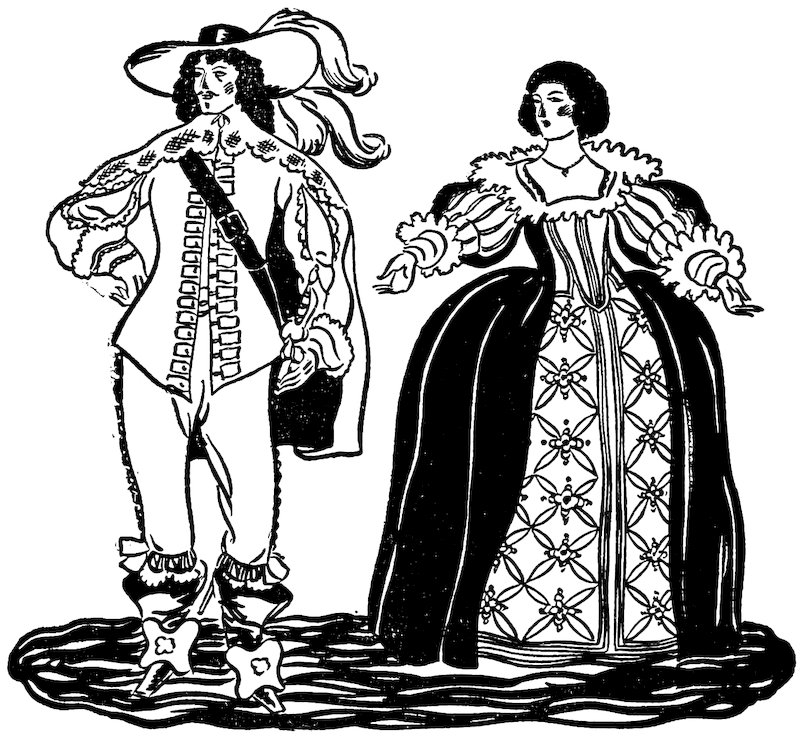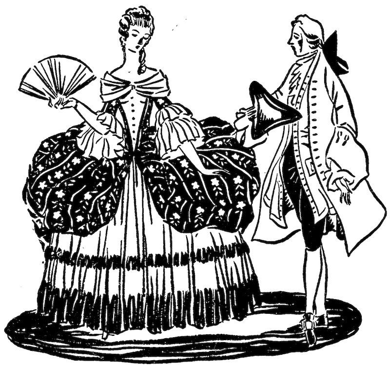 This play was given for fifty-two successive nights. Mr. Powell, the clever but roguish fellow who owned these puppets, once set up his little theater just outside the colonnades of Covent Garden, opposite the parish church of St. Paul. He began his plays at the sound of the church bells, and was successful in diverting so many from the church services that he was severely reproved by the churchmen. It was this same clever Powell, who had a very famous puppet called Lady Jane, who went to Paris every month and came back with a trunk full of gowns of the latest fashion. These marionette style shows delighted all the ladies of fashion in London, including the queen.