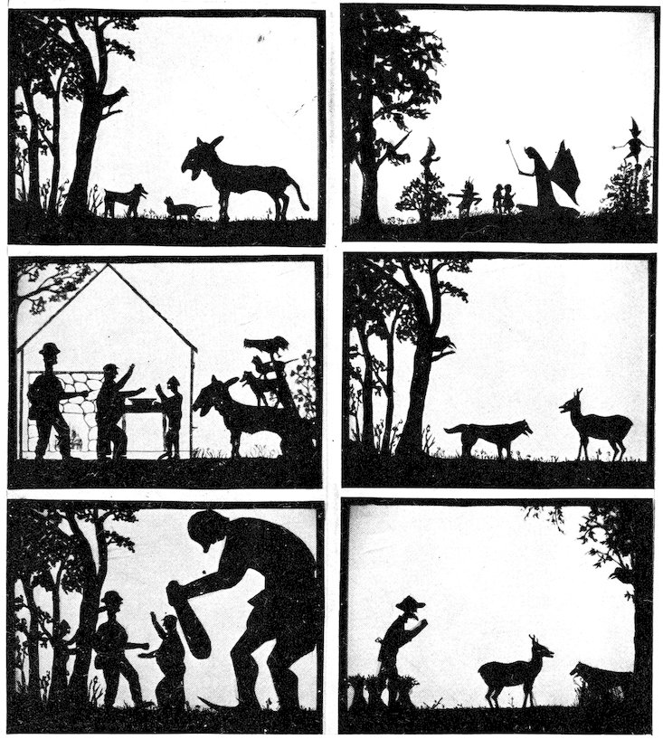 In many eastern countries there were two kinds of marionettes: the round kind that we know and another thin, flat kind called “Shadows.” No one seems to know just when the first shadow figures were made. An old legend says they came from the 4time when all that the people saw of the religious ceremonies was the shadow of the priest on the walls of the sacred tent.
